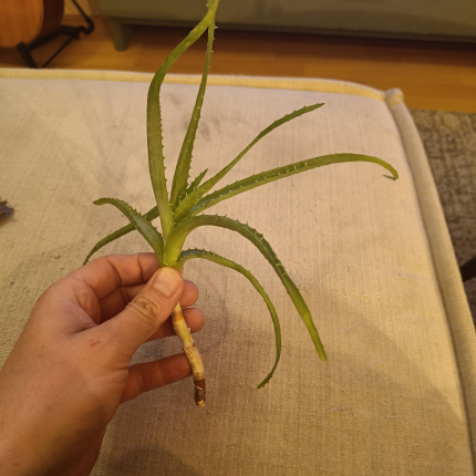 Stekkie van een aloë vera, snoeirest van een grote plant. Ongeveer een week gedroogd, klaar om de grond in te gaan! Leuk om m ergens voor te ruilen.