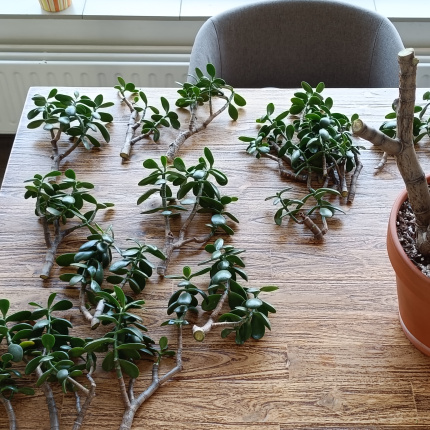 Heb mijn 50-jaar oude jade plant een flinke snoeibeurt gegeven voor de lente. Enorm veel stekken, grotere en kleinere, aangeboden. Ruilen voor iets leuks mag altijd, maar is niet nodig.